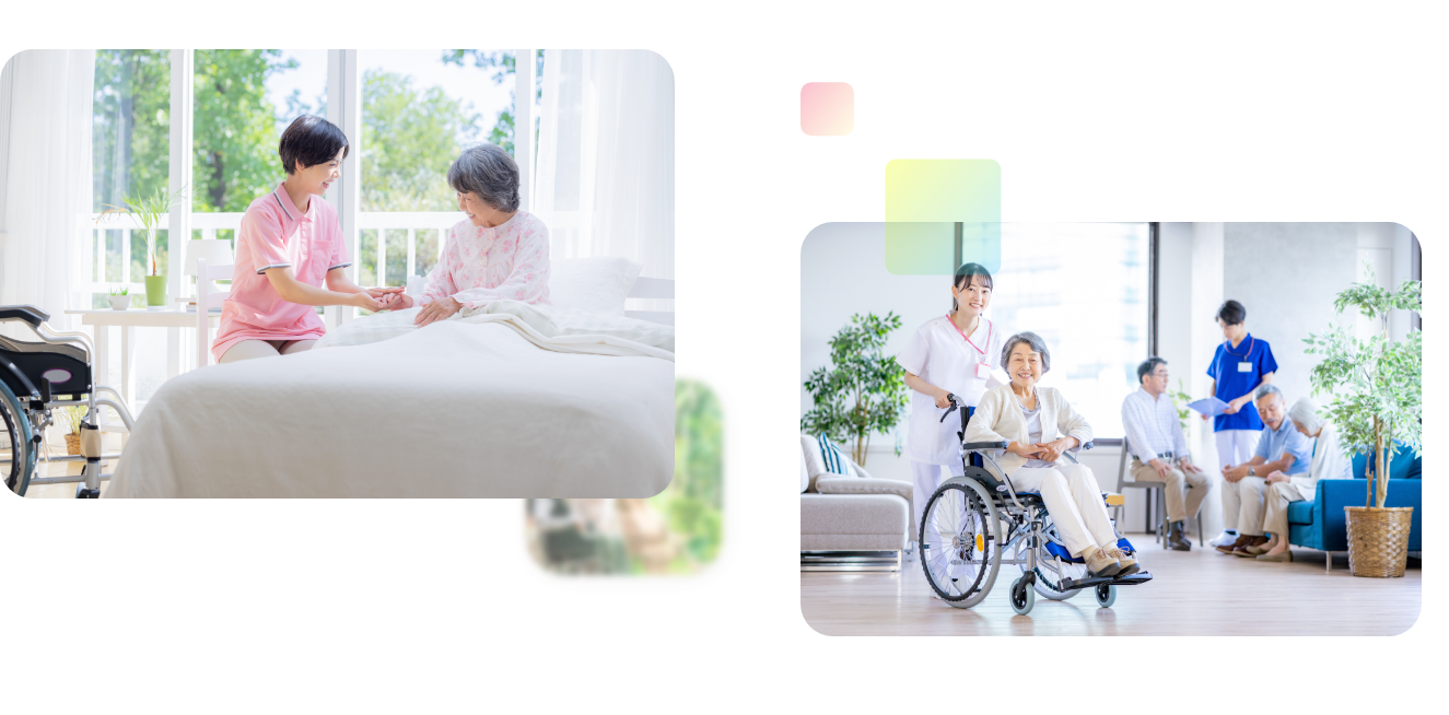 訪問看護ステーションや訪問介護事業所と連携し、24時間での看護・介護体制があるナーシングホームです。施設に入居しながらさまざまな医療・介護支援を利用できるため、医療が常に必要な方や介護度が高い方も対象としています。